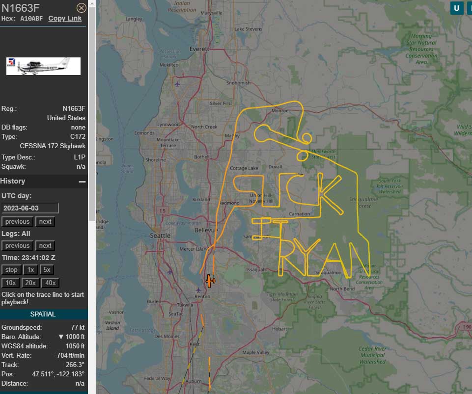 Piloto usa avião de pequeno porte para escrever palavrão e ofensa no céu com uso do ADS-B