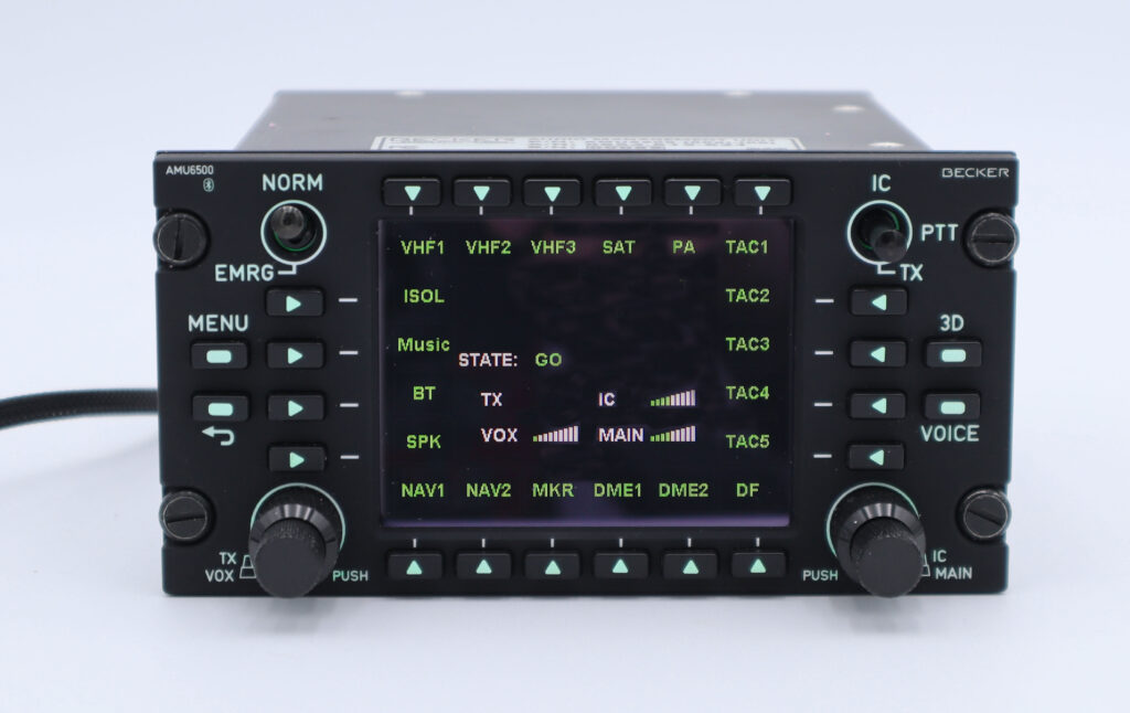 A Becker Avionics acaba de anunciar alguns dos novos recursos que serão oferecidos em seu AMU 6500 atualizado , um sistema de intercomunicação digital. Isso inclui áudio 3D, recursos de Bluetooth e a capacidade de usar o AMU (Audio Management Unit) 6500 em combinação com o Sistema de Comunicação de Voz Digital da Becker, o DVCS 6100 , como um sistema híbrido. A adição da Unidade Antena-Receptora (ARU) 6510 permite a expansão do AMU 6500 de três para 15 posições de intercomunicação.